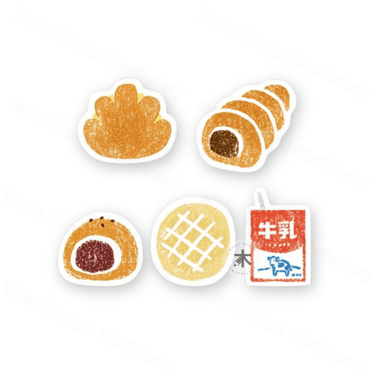 Furukawa Shiko - Washi Flake Stickers - Baked Goods Series - Bread & Milk