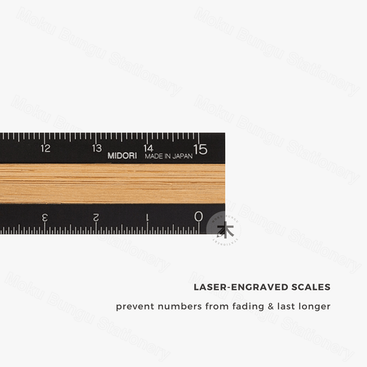 Midori - Aluminium Wooden Ruler - 15cm - Black Aluminium/Light Wood