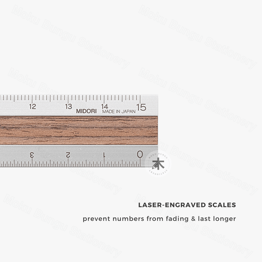 Midori - Aluminium Wooden Ruler - 15cm - Silver Aluminium/Dark Wood