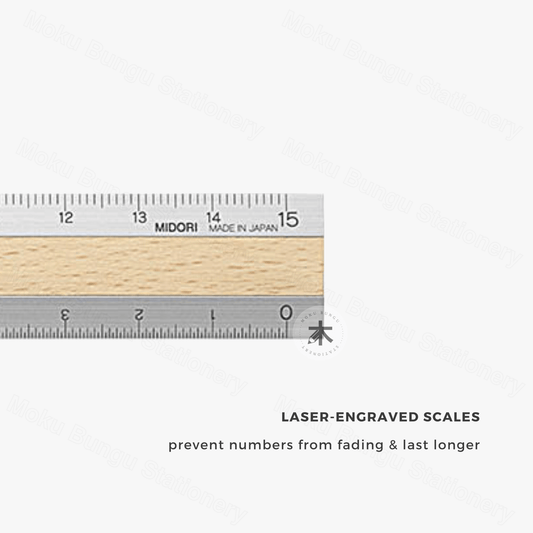 Midori - Aluminium Wooden Ruler - 15cm - Silver Aluminium/Pale Wood