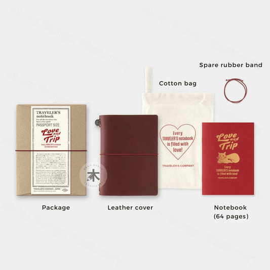 TRAVELER'S notebook Leather Cover Starter Kit - Passport Size - Red - Limited Edition - LOVE AND TRIP