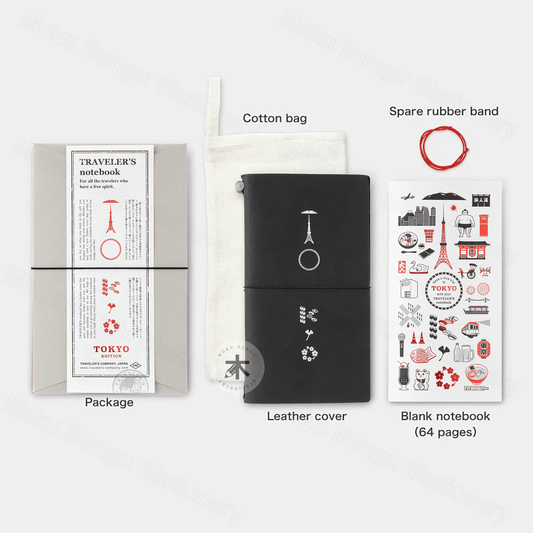 TRAVELER'S notebook Leather Cover Starter Kit - Regular Size - Black - Traveler's Town Limited - Tokyo