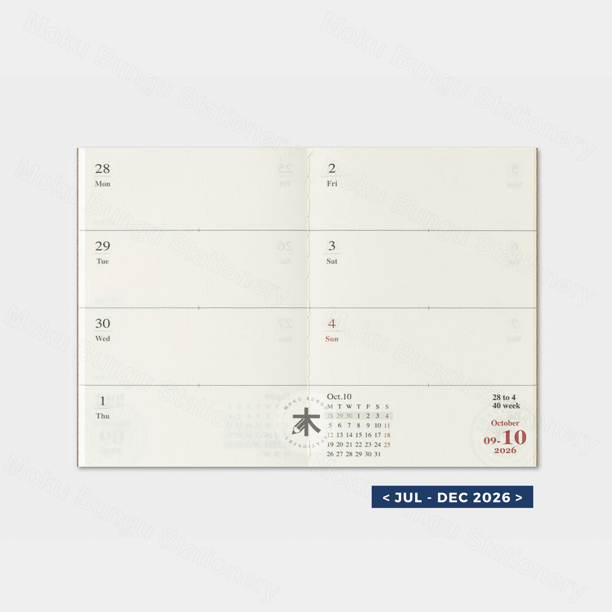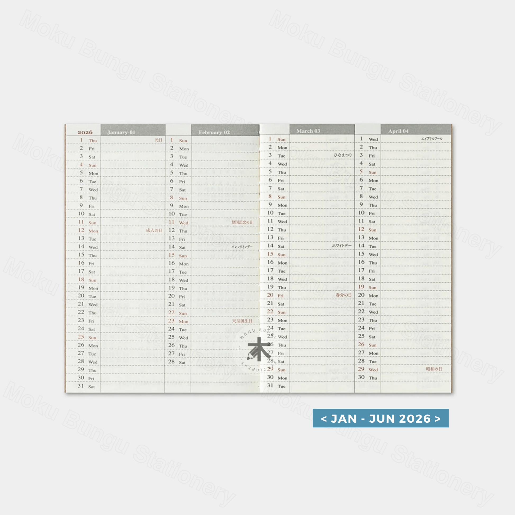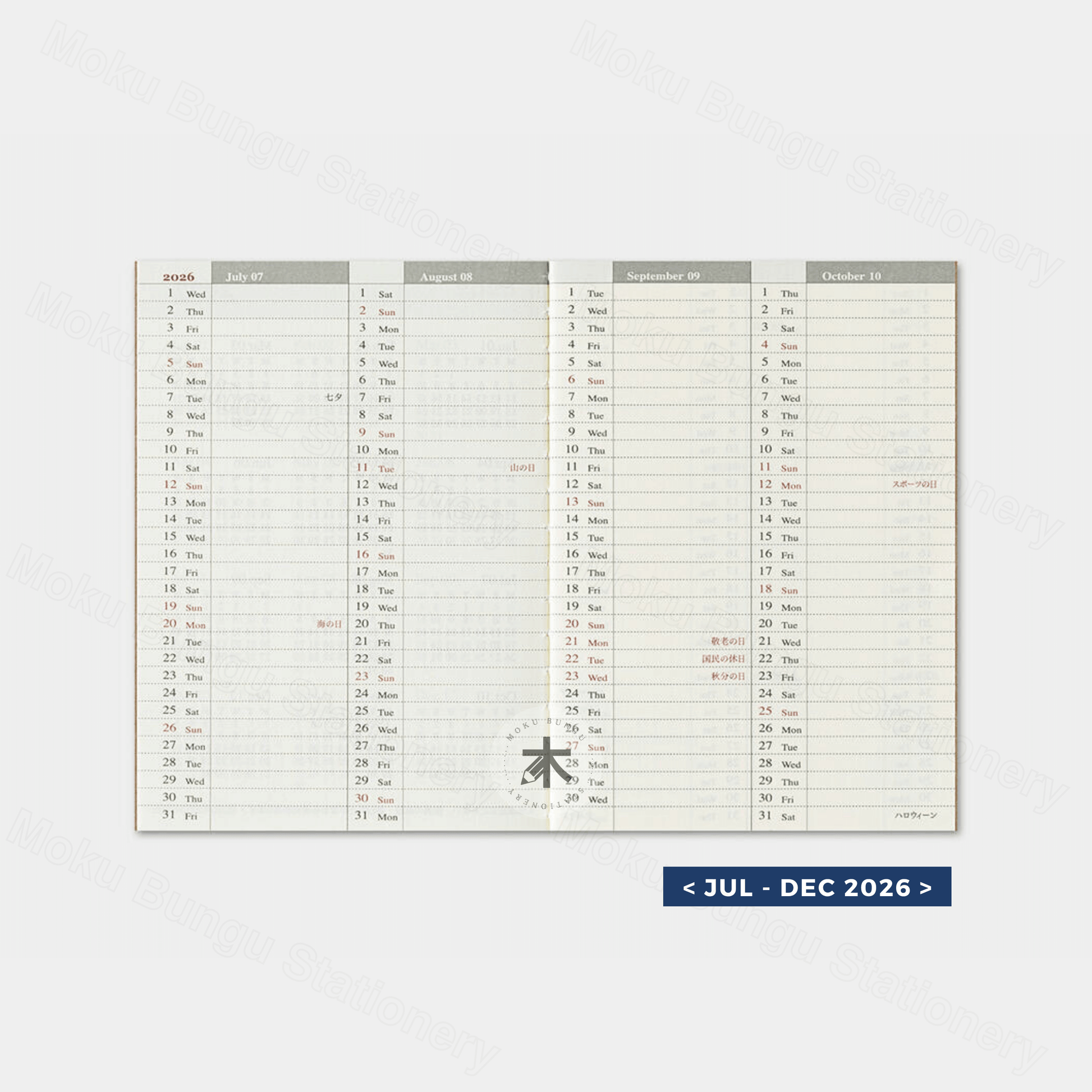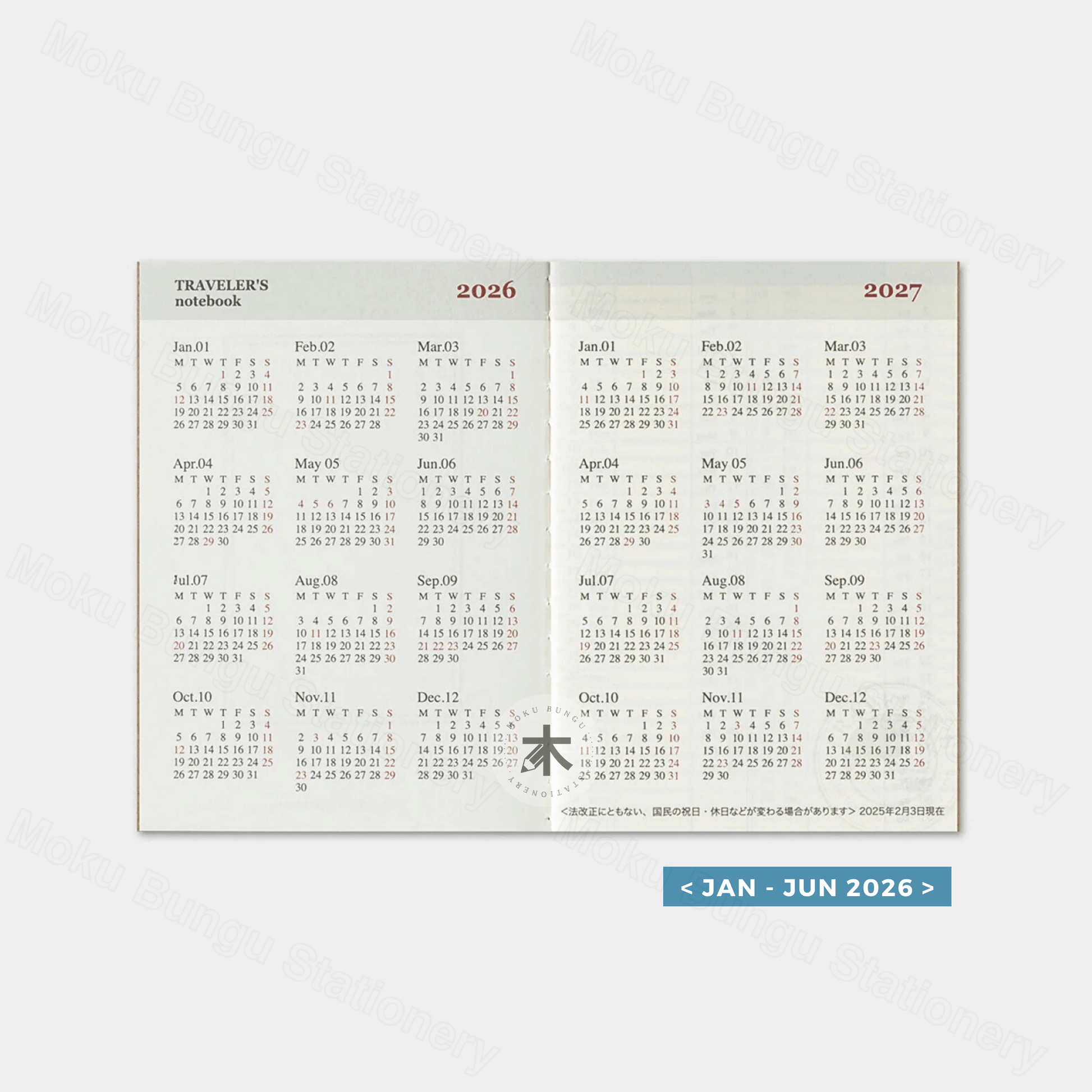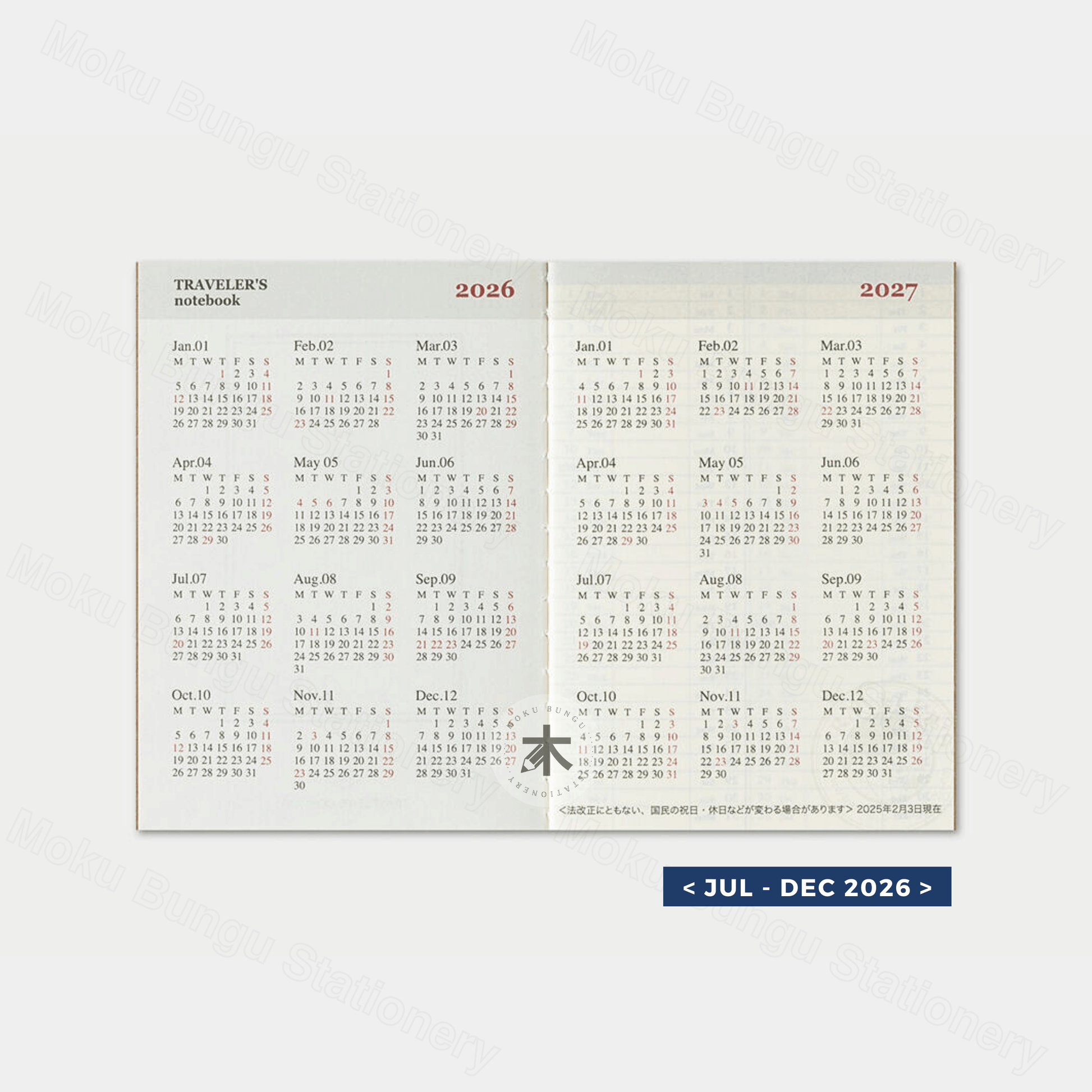 - This TRAVELER’S COMPANY 2026 Diary Set covers the whole year 2026 with 2 refills, and each refill covers a 6-month period (Jan-Jun 2026 & Jul-Dec 2026). They come with double-page spread in dated weekly format.