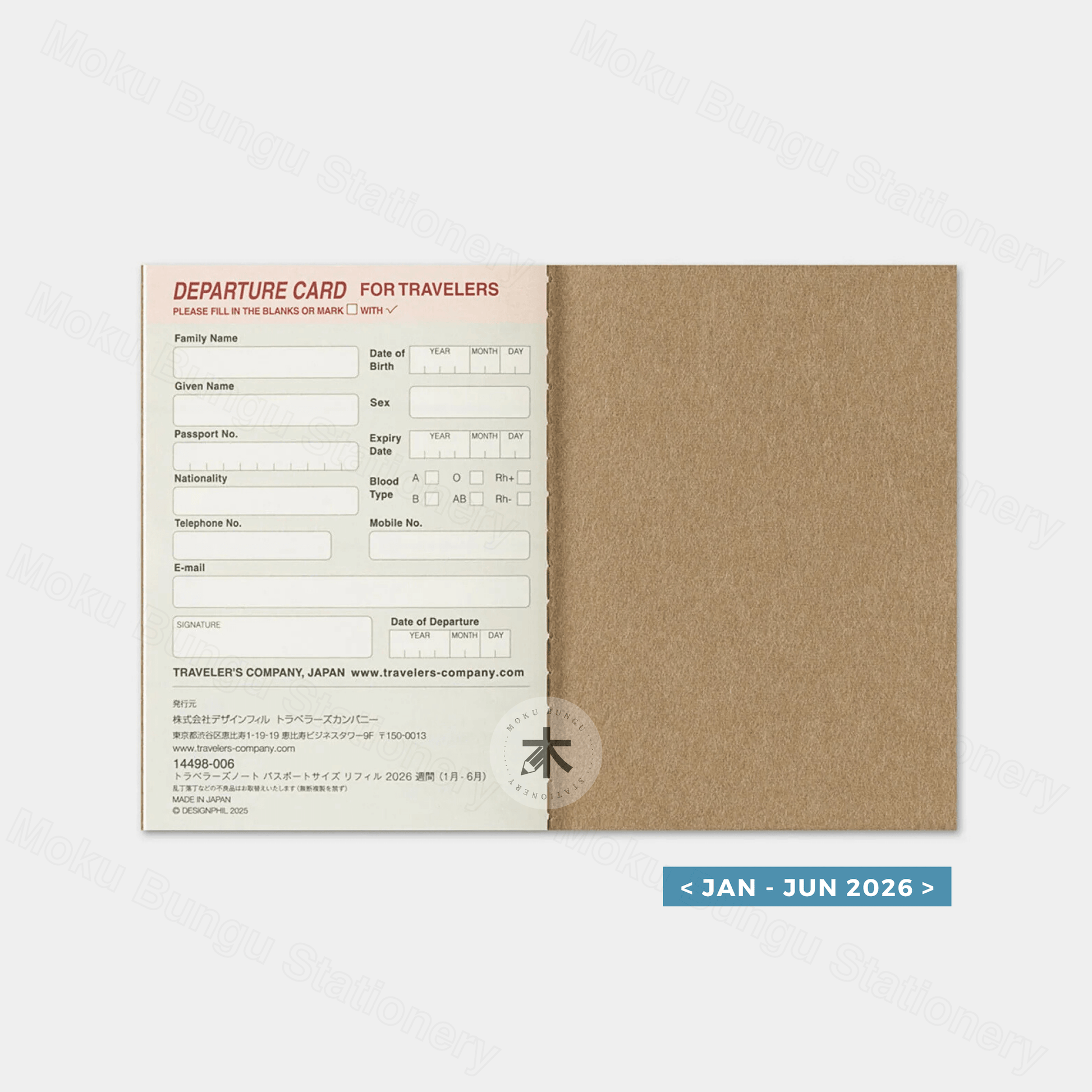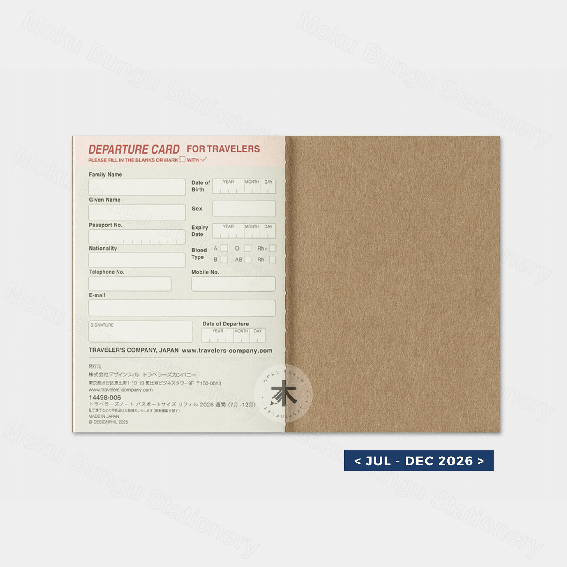 TRAVELER'S notebook Refill - Passport Size - 2026 Diary - Weekly Planner
